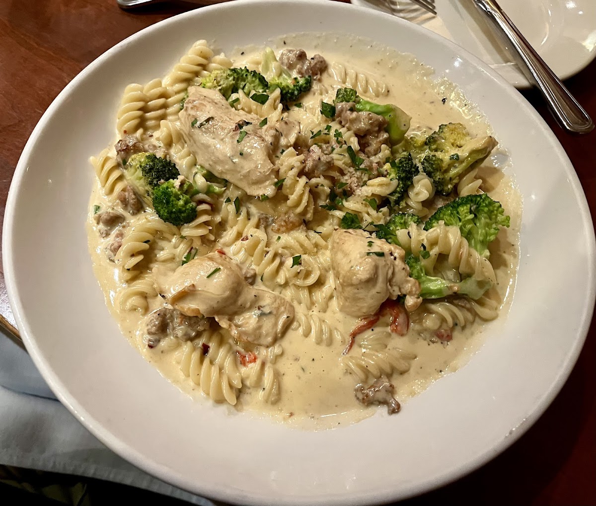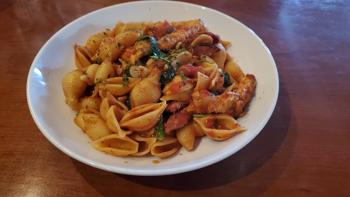 The menu reads simple, but the choices add up quickly. You start with a base like whole-grain penne, gluten-free rotini, or classic linguine. Then come the sauces, from roasted garlic cream to a surprisingly balanced spicy tomato. After that it’s toppings: grilled chicken, caramelized onions, sautéed mushrooms, fresh basil, and imported Parmigiano-Reggiano. During one visit, I timed the process with my phone out of curiosity. From order to first bite took just under five minutes, which is impressive when you’re feeding a full dining room.
